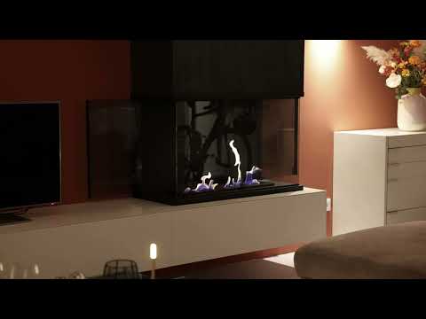 Als Teil eines eleganten Raumteilers kann der dreiseitige Ethanol Einbaukamin als zentrales Element und Highlight einer offenen Wohnlandschaft dienen. Das dreiseitig geöffnete Design ermöglicht freie Sicht aus einer 270° Perspektive auf das faszinierende Spiel der Flammen.